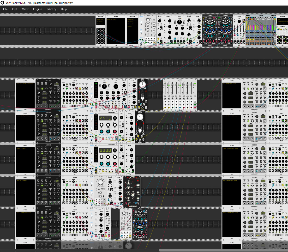 VCV ended up being the perfect tool for this job as all per-animal micro-patches, each with their own clock corresponding to the animals heartrate could be built in a single workspace. The computer can only handle a handful of patches at a time but modules can be disabled.